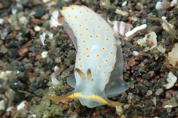 アマクサウミコチョウと「ムーミン」ネコジタウミウシ科の一種がフィーバー中そしてたぶんシタウミウシ?みたいな子と遭遇キホシミノウミウシはマメダワラに引っかかてるしなかなか面白い玄人好みのウミウシシーンとなっています。 ※4/11土曜日はお休みとさせていただきます