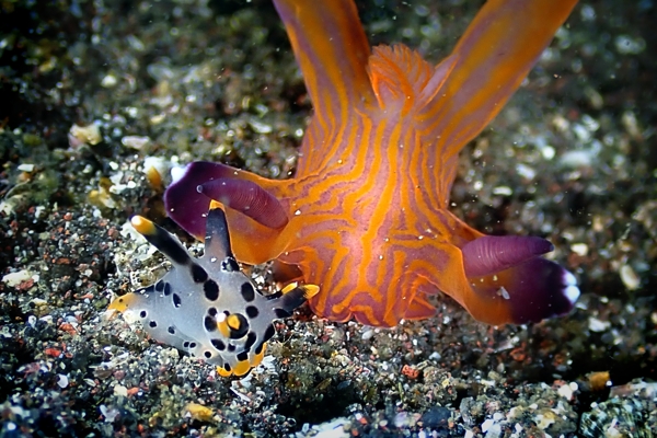 やはり「ゴマちゃん」ゴマフビロードウミウシの当たり年ですね黄ゴマが交尾してました。クチナシツノザヤウミウシちゃんは相変わらず圧倒的に美しい。ツノザヤがいて大きさがわかります。アマクサウミコチョウが昼に高確率で逢えるのは、海の中が暗いおかげです❤暗くて濁った海が大好きですwNEWちびカエルも見つけましたよん。